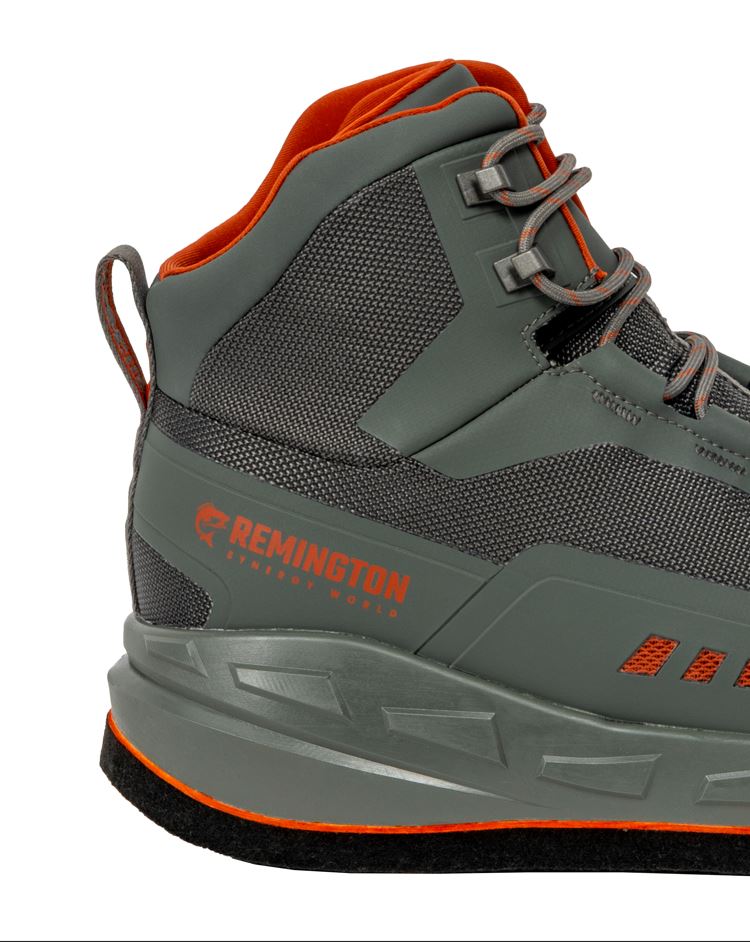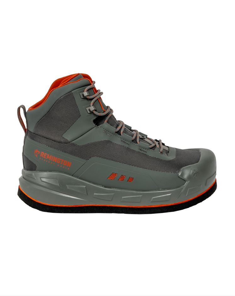 Ботинки забродные Remington Guide grey одни из самых функциональных и удобных забродных ботинок в линейке Remington. Забродные ботинки на войлочной подошве сочетают в себе лёгкость, удобство и непревзойденное сцепление со скользким каменистым дном. Прочный и лёгкий синтетический материал верха на основе полиэстера и ТПУ обеспечивает износостойкость ботинок забродных Remington Guide grey . Формованный резиновый носок и антиабразивные панели по бокам защищают от износа в непредсказуемых условиях брода. Специальные дренажные отверстия с сетчатой тканью по бокам-достаточно надавить ступнёй, чтобы удалить скопившуюся воду. Высокая конструкция ботинка забродного Remington Guide grey и шнуровка с усиленными люверсами обеспечивает отличную фиксацию голеностопа. В ботинках предусмотрено кольцо для крепления вейдерсов для дополнительной защиты неопренового носка от износа и грязи. Промежуточная подошва из ЭВА двойной плотности с высокой амортизацией для комфорта и устойчивости. Подкладка из гладкого синтетического материала обеспечивает удобство скольжения носка при надевании и снятии. Арт.FM2507-012