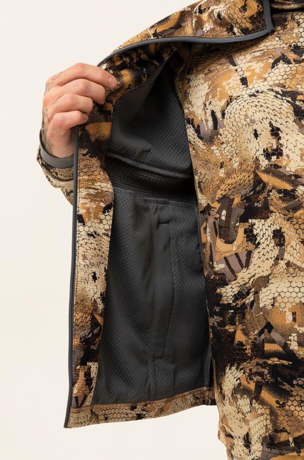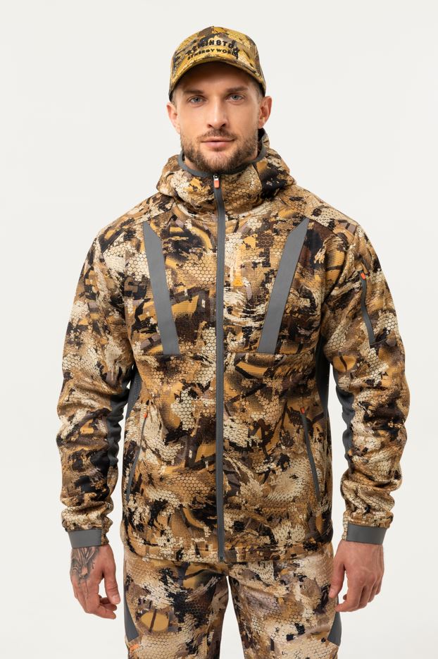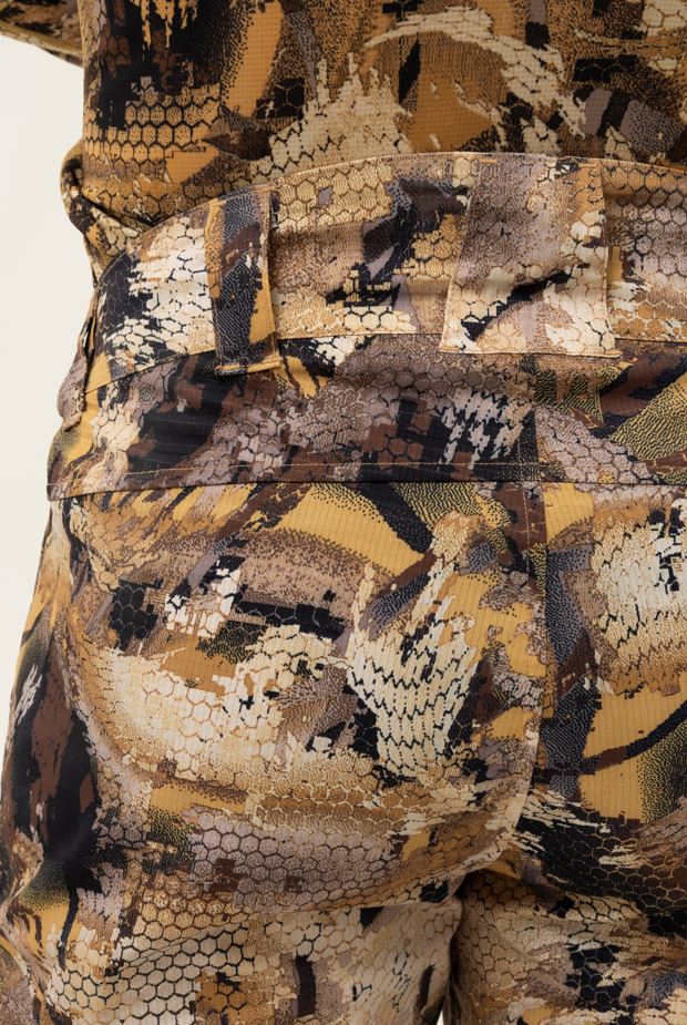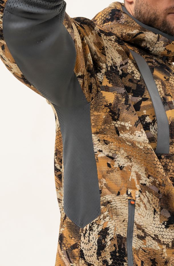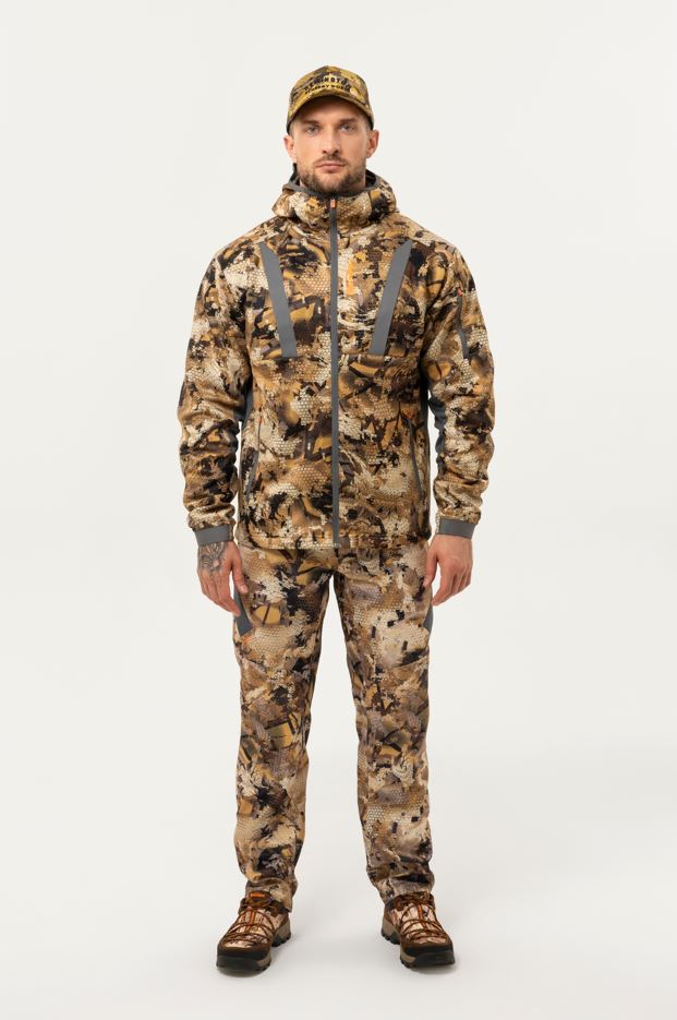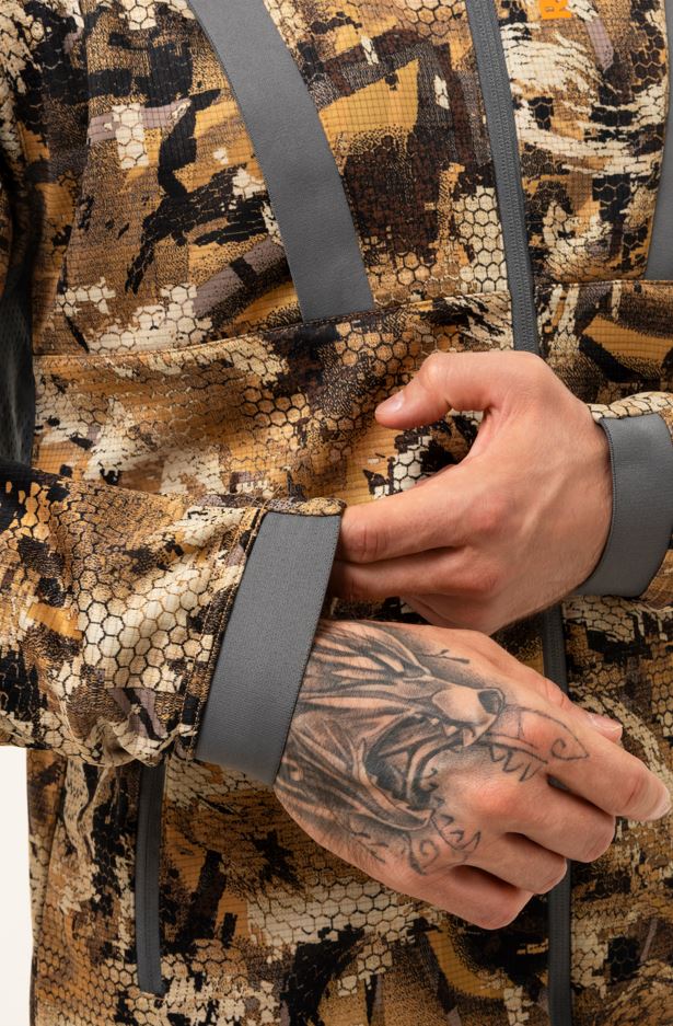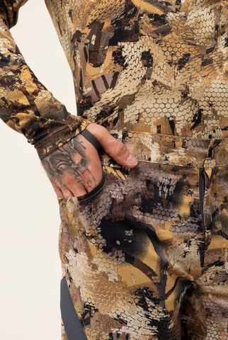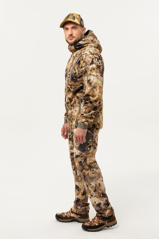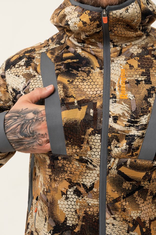 Костюм Remington Mountain Range Yellow Waterfowl Honeycombs разработан с участием охотников, чтобы соответствовать задачам охоты в тёплый сезон. Изготовлен из бесшумной ткани, которая снижает уровень шума при передвижении. Капюшон костюма Remington Mountain Range Yellow Waterfowl Honeycombs защищает от ветра и осадков, а резинка на рукаве фиксирует его на запястье. Прямой крой куртки и анатомическая форма рукава не ограничивают движения. Семь карманов позволяют удобно распределить снаряжение и согреть руки в боковых отсеках. Подкладка двух нагрудных карманов и вентиляционные вставки под мышками выполнены из дышащего материала для отвода излишков тепла. На брюках предусмотрены молнии для удобного надевания и резинка на поясе для устойчивой посадки. Четыре кармана вмещают необходимые мелочи. Уплотнённые вставки на коленях костюма Remington Mountain Range Yellow Waterfowl Honeycombs позволяют комфортно стоять на коленях или лежать, не снижая мобильности.