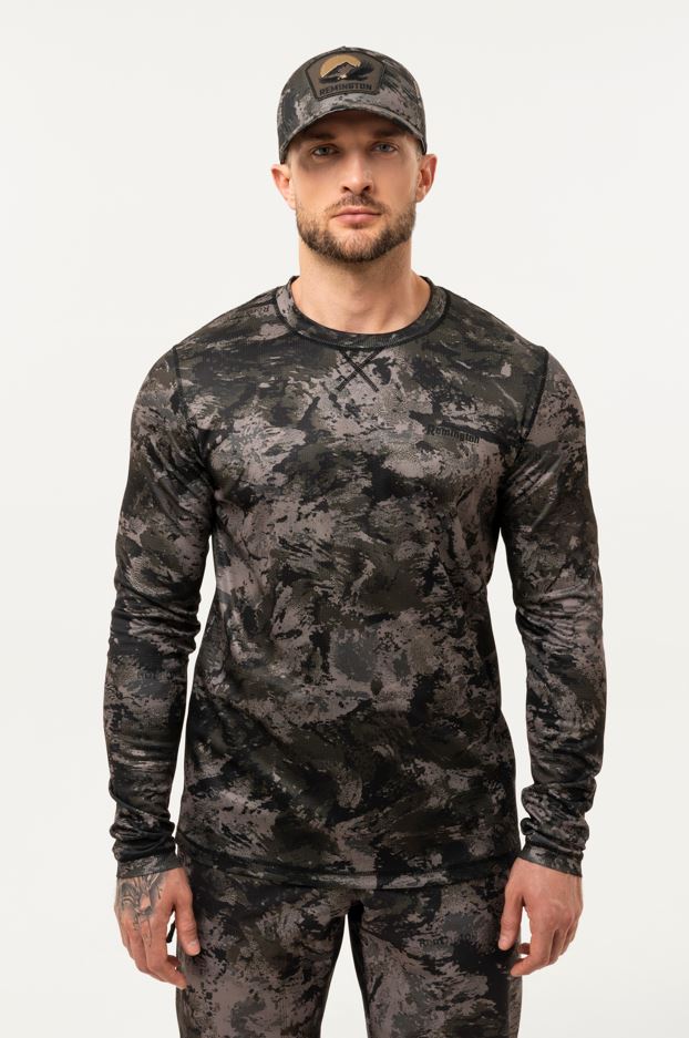 Лонгслив Remington Professional Black Camo изготовлен из эластичного и быстросохнущего полиэстера, который эффективно отводит влагу от тела и идеально подходит для использования в качестве первого слоя с мембранной одеждой. Летом лонгслив Remington Professional Black Camo защищает от ультрафиолетовых лучей, а в демисезон и зимой служит базовым слоем для сохранения комфорта и сухости. Цвет Black Camo - камуфляжная расцветка, специально разработанная для маскировки в темное время суток. Арт.RM1322-981