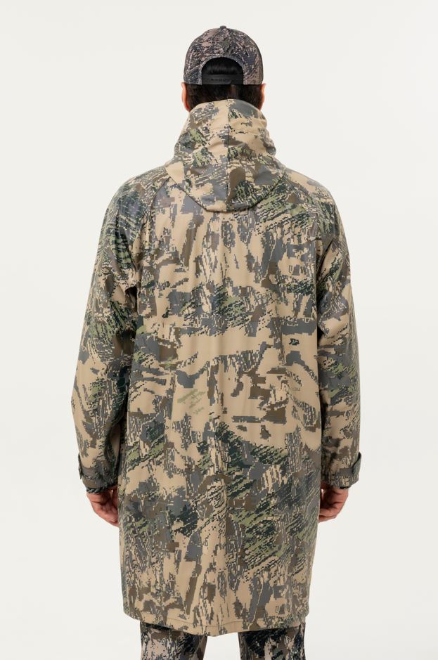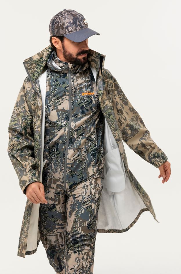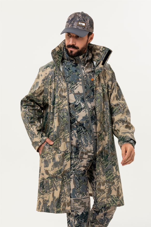 Плащ-тент Remington PU waterproof Figure изготовлен из прочного полиуретана, который обеспечивает 100% защиту от влаги и ветра. Эластичный материал комфортен в носке и устойчив к износу, а свободный крой не ограничивает движений и подходит для разных типов фигуры. Капюшон с регулируемыми кулисами и воротник-стойка надёжно защищают от осадков и порывов ветра. Для удобства в плаще-тенте Remington PU waterproof Figure предусмотрены молния и кнопки-застёжки, два вместительных кармана и манжеты на велкро. Цвет плаща-тента Remington PU waterproof - Figure: эффективная маскировка в лесных и полевых ландшафтах, снижает заметность для животных и обеспечивает гармоничное слияние с природой. Арт.FM4400-993